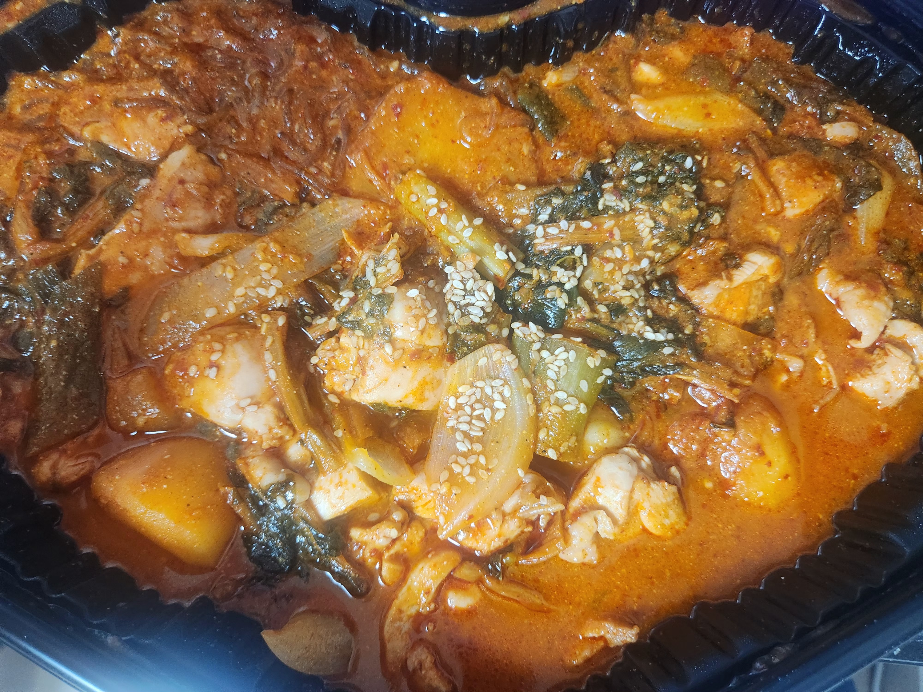사실 처음 메뉴판에서 시래기찜닭을 봤을 때, “찜닭에 웬 시래기야?”라는 의문이 먼저 들었어요. 시래기라고 하면 된장국, 시래기국밥 같은 토속적인 음식에 어울린다고 생각했는데, 찜닭과의 조합은 쉽게 상상이 안 가더라고요. 하지만 제가 정말 좋아하는 제주도의 고집돌우럭이라는 집에서 시래기를 찜에 넣어먹는게 생각나서 한번 비슷한 맛이지 않을까 하면서 주문을 해봤습니다.